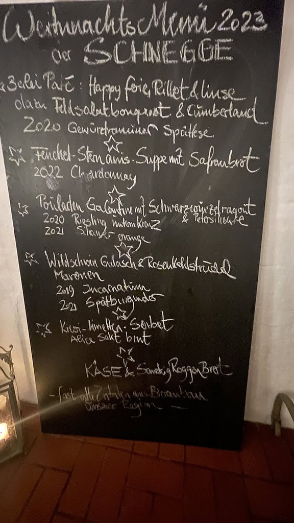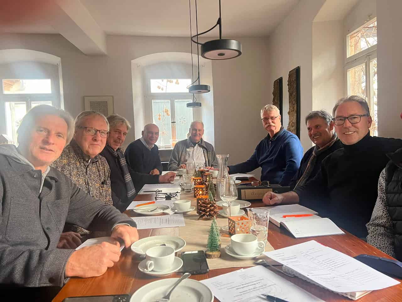 Wie alle „normalen“ Jahre haben die Schneggen ihre Mitgliederversammlung mit einem festlichen Weihnachtsmenü ausklingen lassen. Nachdem in der Versammlung alle wesentlichen Punkte geklärt und die wichtigsten Entscheidungen getroffen waren, konnte man zusammen mit den Ehefrauen den gemütlichen Teil des Abends beginnen. Wir konnten unser neues Mitglied Renato offiziell einführen und als Gast war „Anwärter“ Tobias auch gern gesehen. Leider haben auch einige gesundheitsbedingt nicht teilnehmen können, sehr schade. Alle hatten einen gemütlichen Abend, durch den uns Christine und ihr Team wie immer charmant und fachgerecht führte. Nach etlichen Gesprächen und entsprechend viel Essen und Getränke konnten sich alle zufrieden und wohl verkostet auf den Heimweg machen.