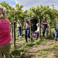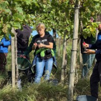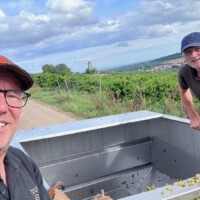 Le 13 septembre a eu lieu la récolte annuelle de raisins. Cette fois un peu plus tôt que prévu, mais il était grand temps de rentrer les raisins. La pluie et la grêle tardives ont bien endommagé les vignes. La récolte n’a donc pas été aussi abondante que d’habitude, avec 500 litres de raisins rouges et 750 litres de raisins blancs. Cependant, les degrés Oechsle sont de 93 et 91, ce qui pourrait à nouveau indiquer une bonne qualité. Comme toujours, nous sommes impatients de voir ce que notre vigneron en fera !